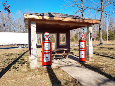 The two rest areas on I-44, near mile marker 111 have really cool picnic shelters celebrating icons of Rt 66. |