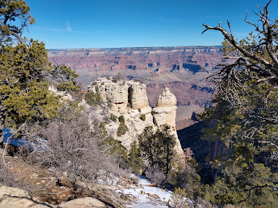 There were folks hiking the ice covered trails down into the canyon, but we chose to stay on the paths on the rim that were exposed to the sun and ice-free. |